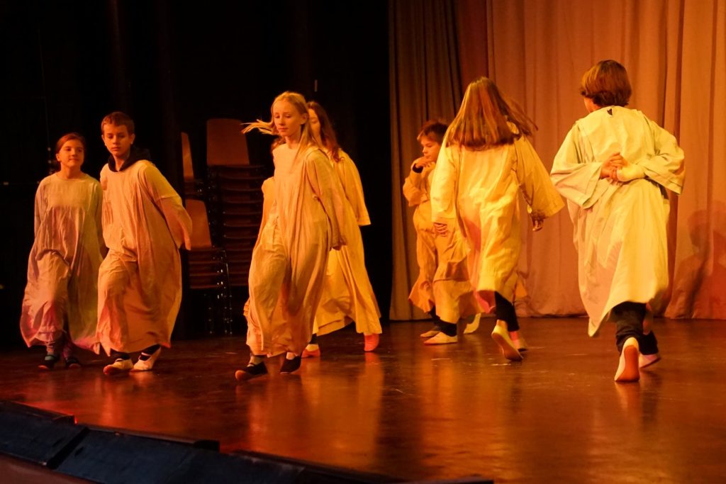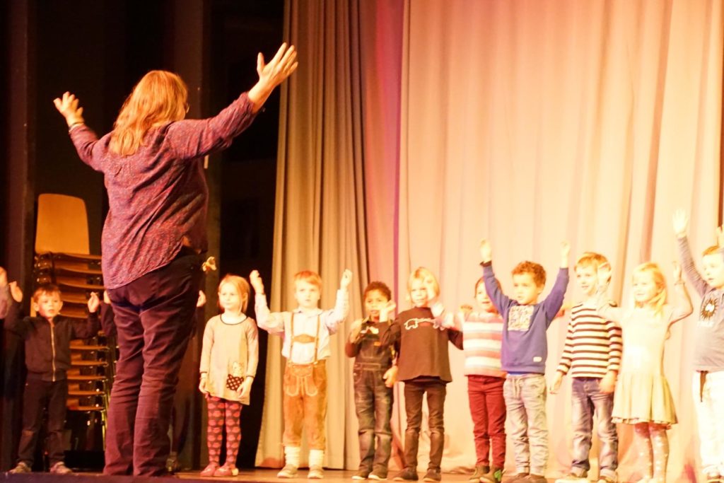Die Streicher der Mittelstufe beeindruckten mit drei virtuosen Stücken, die die für den erkrankten Dirigenten Lukas Gayler eingesprungene Hiltrud Kamolz gewohnt souverän meisterte – inklusive eines im 7/8tel-Takt gespielten Stücks Programmmusik, dem „Mückentanz“ von Andrea Holzer-Rhomberg. Hier konnte man die nervende Mücke deutlich hören!