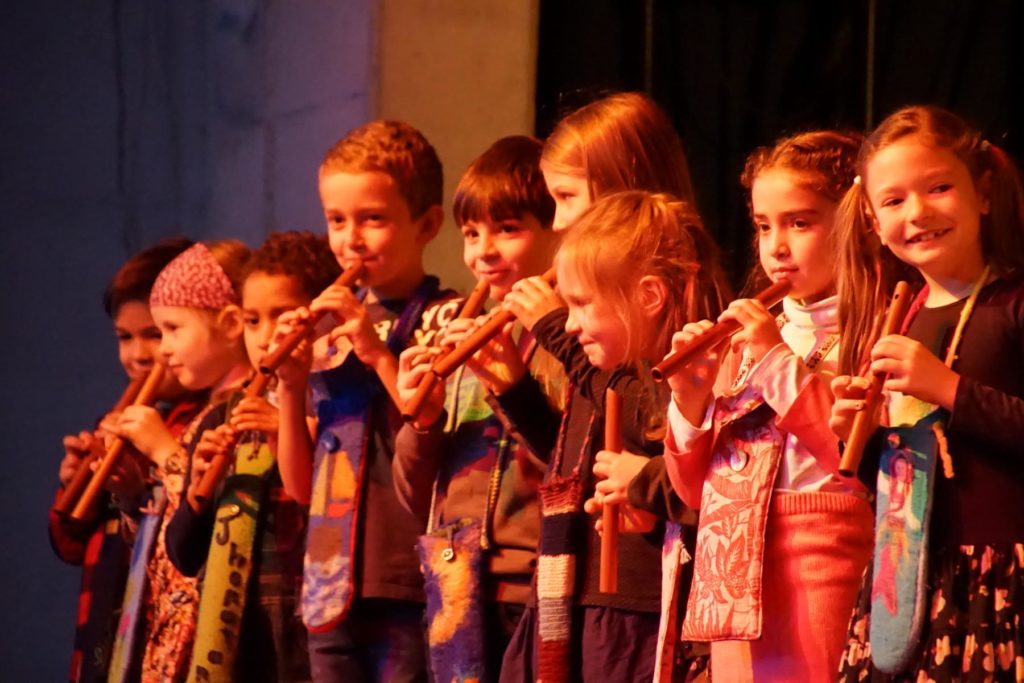 Luftig ging es los – das Konzert zur Weihnachtszeit in der Freien Waldorfschule. Die Bläser der Mittelstufe spielten den fröhlichen beschwingten „Marche des Parachutistes belges“ von Pierre Leemans und stimmten die Zuschauer ein auf einen Abend voller musikalischer Gegensätze. Gospels, Pophymnen, Vivaldi, Hanns Eisler und sogar der ebenso beliebte wie verhasste Ohrwurm „In der Weihnachtsbäckerei“ erklangen im Festsaal der Schule, wo viele Gäste stehen mussten, weil sie keinen Sitzplatz mehr bekommen hatten.