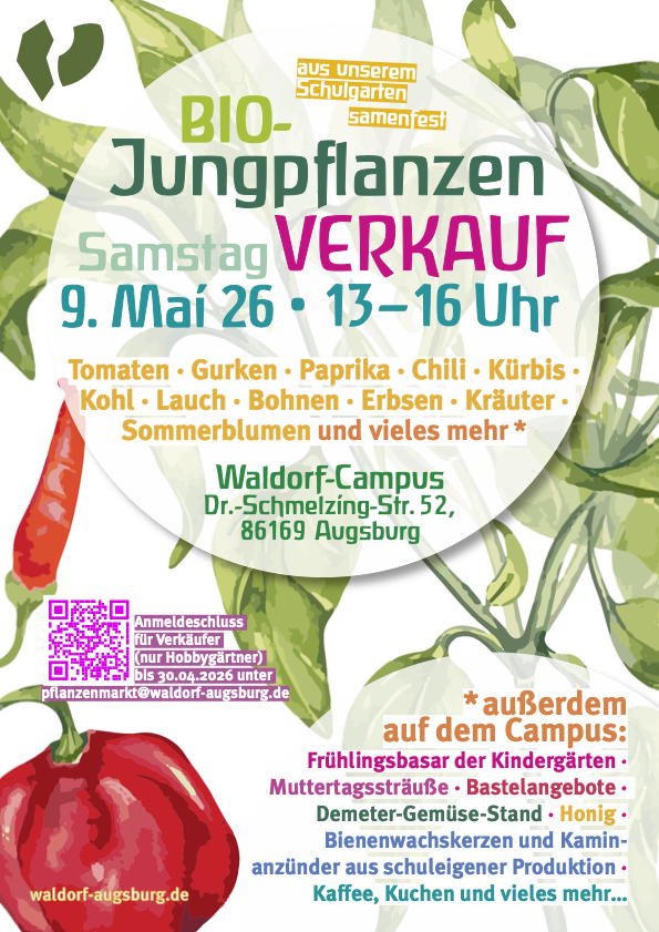 Unser Schulgarten ist ein ganz besonderer Lernort an der Waldorfschule. Bei dieser Führung erfahren Sie, wie Schülerinnen und Schüler im Gartenbauunterricht mit Erde, Pflanzen und Jahreszeiten arbeiten und Sie erhalten Einblicke in praktische Unterrichtsprojekte. Vielleicht sind auch noch einige Gemüsepflanzen oder Blumen vom Jungpflanzenmarkt (am 9.5.) übrig – diese können vor Ort erworben werden. Direkt im Anschluss an die Führung haben Sie die Möglichkeit, einen Eurythmie-Workshop zu besuchen.