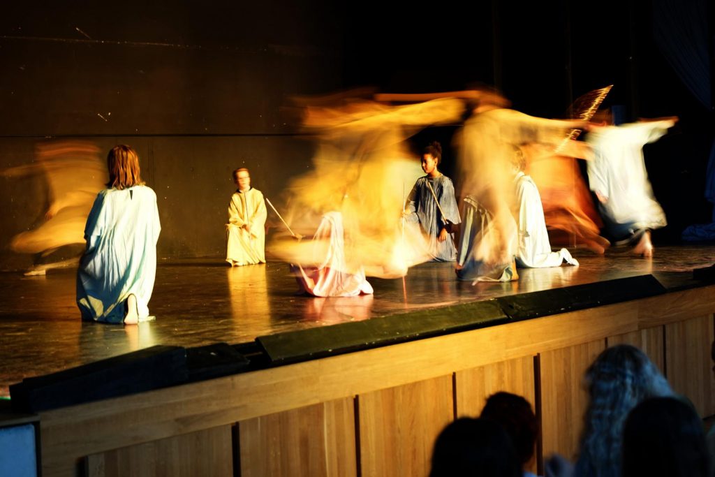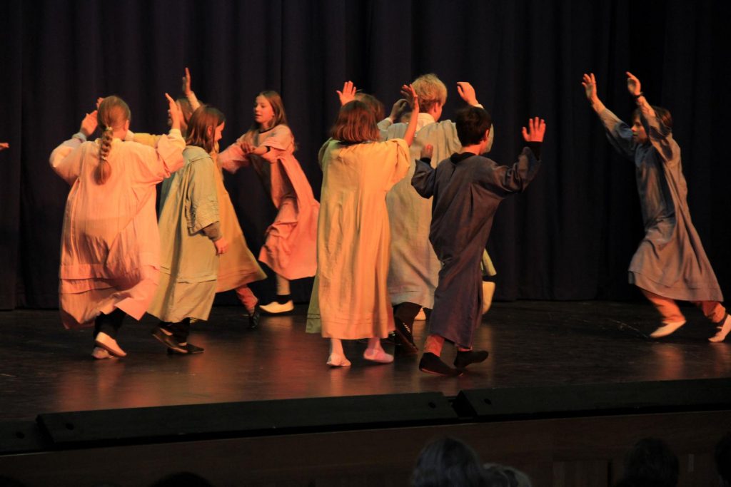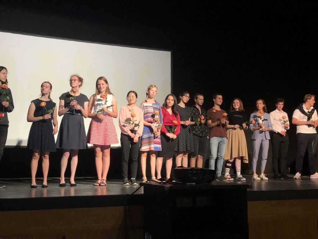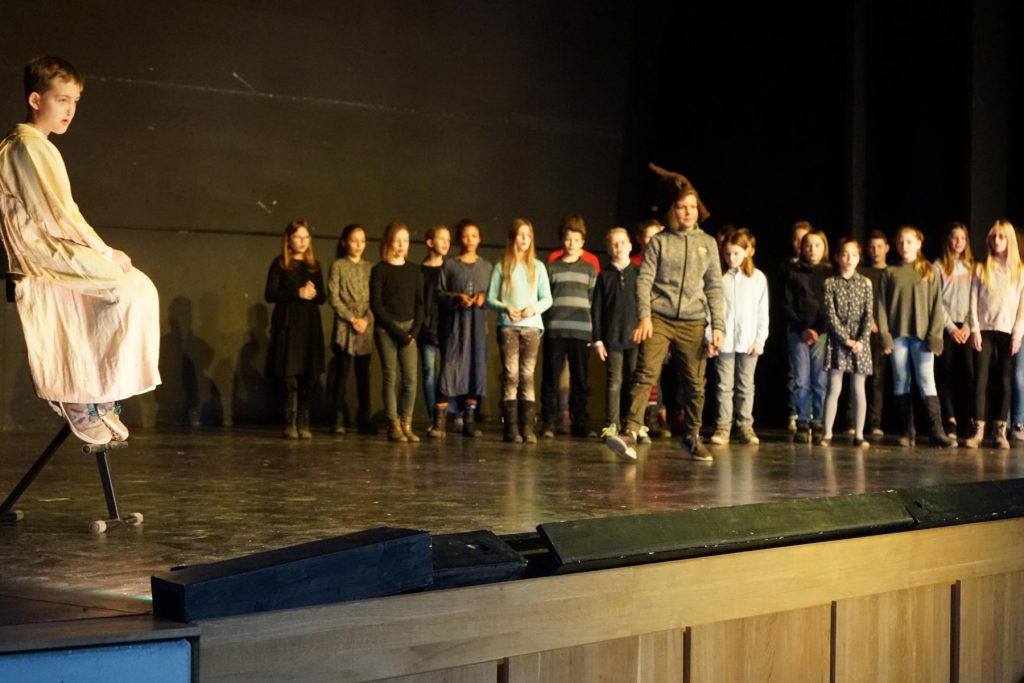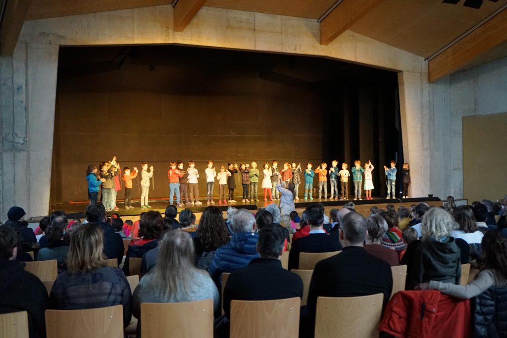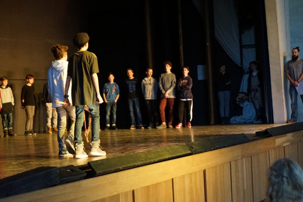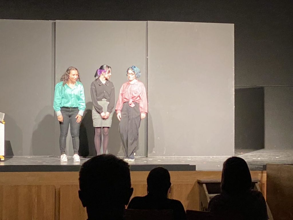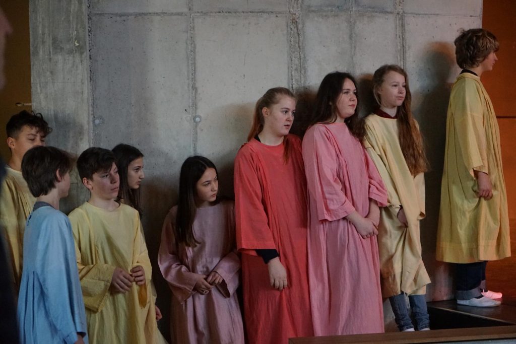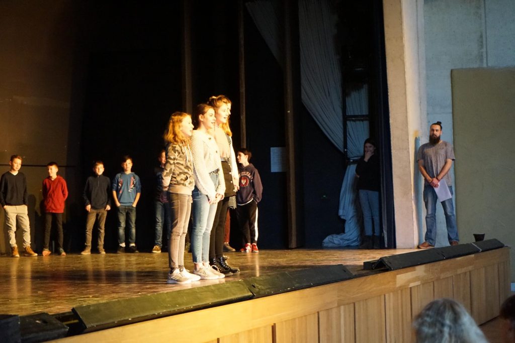 „Verlassen des Hygienebereichs verboten“ steht auf dem Schild. Zunächst könnte das eins der vielen Hinweisschilder aus der Corona-Pandemie sein – aber dann wird doch klar, es ist eine Requisite aus dem Stück „Corpus Delicti“ von Julie Zeh, das sich die zwölfte Klasse als Klassenspiel ausgesucht hat. Und das ausgerechnet an dem Wochenende, an dem die Oberbürgermeisterin von Augsburg den sofortigen Kultur- und Veranstaltungslockdown ab Freitag Abend 21 Uhr verkündet, acht mal aufgeführt werden soll. Bei den beiden öffentlichen Aufführung am Donnerstag und Freitag sah man eine spielfreudige, engagierte zwölfte Klasse einen nicht immer leichten Stoff gelungen und spannend auf die Bühnen bringen – denn es gab mehrere Schauplätze im großen Festsaal. Herzlichen Glückwunsch, liebe zwölfte Klasse zu tollen Theatererlebnissen! Fotos: Angelika Lonnemann (Donnerstag), Susanne Altmann (Freitag)
