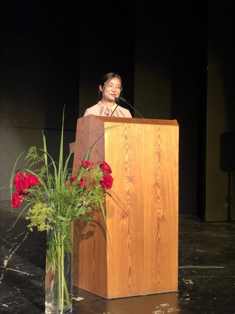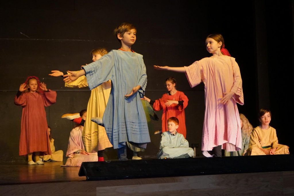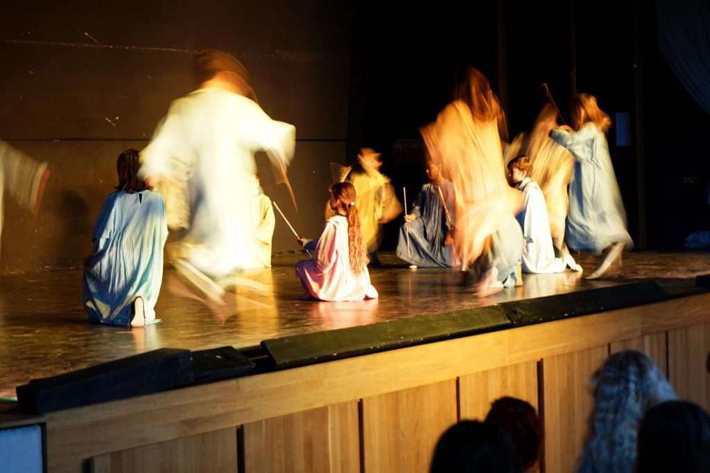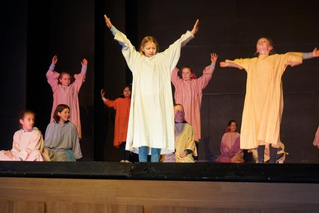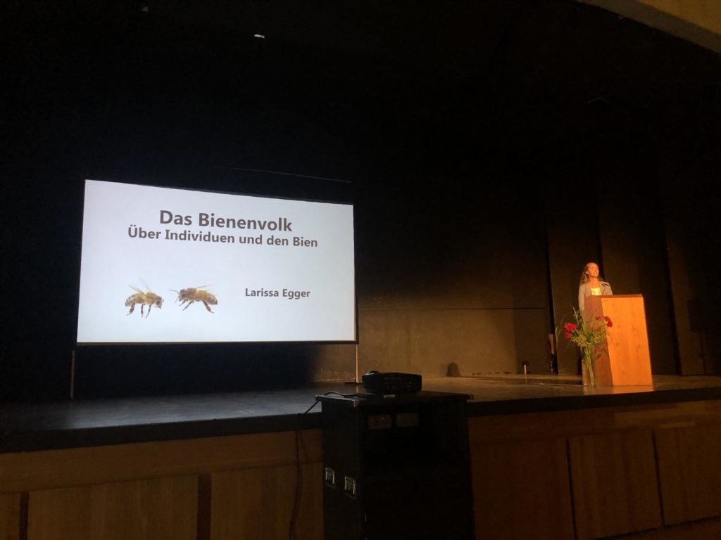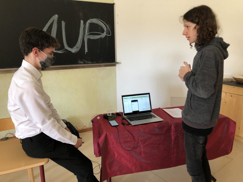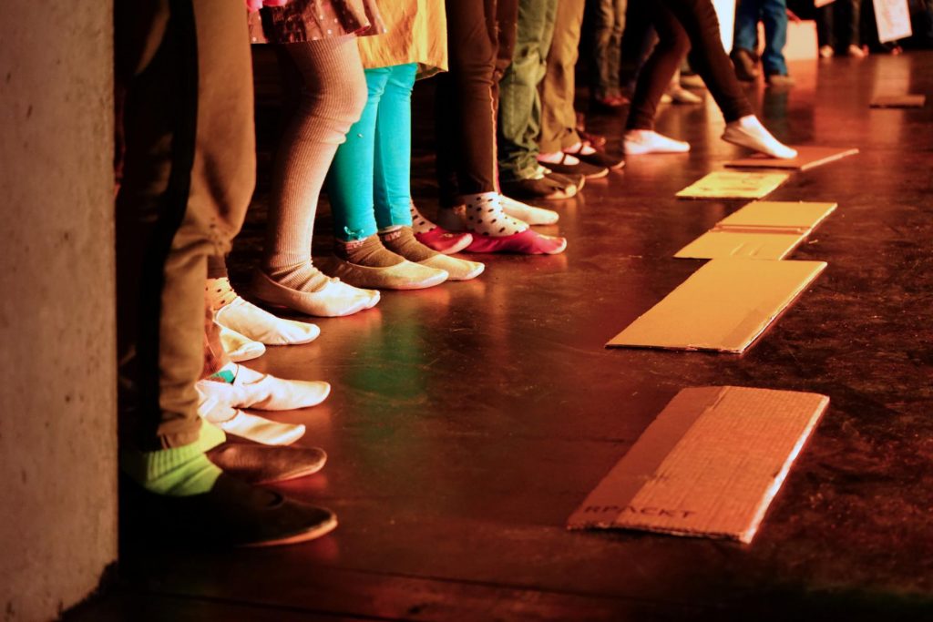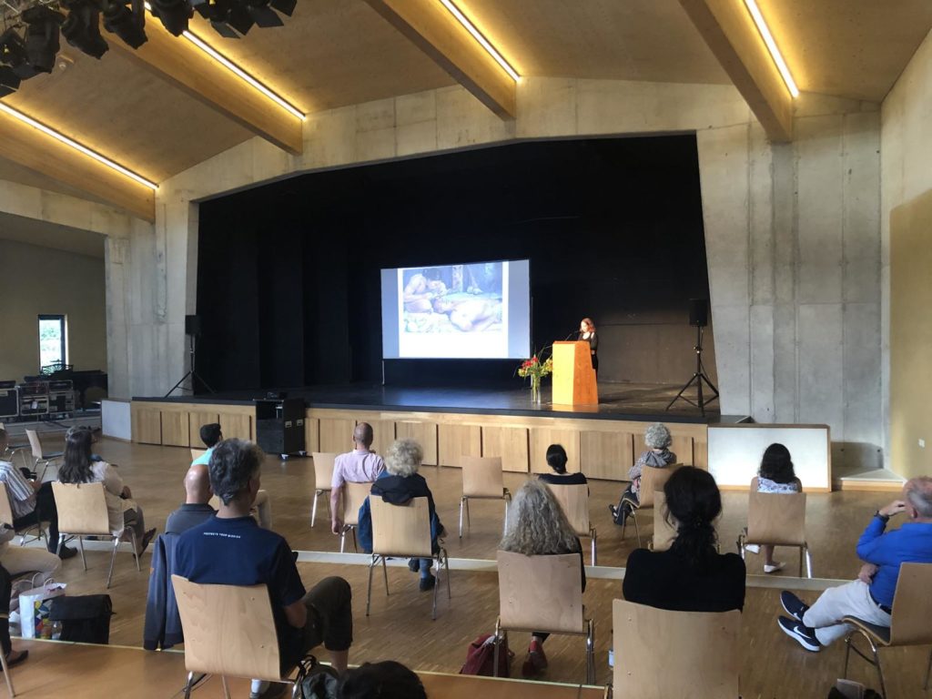 „Verlassen des Hygienebereichs verboten“ steht auf dem Schild. Zunächst könnte das eins der vielen Hinweisschilder aus der Corona-Pandemie sein – aber dann wird doch klar, es ist eine Requisite aus dem Stück „Corpus Delicti“ von Julie Zeh, das sich die zwölfte Klasse als Klassenspiel ausgesucht hat. Und das ausgerechnet an dem Wochenende, an dem die Oberbürgermeisterin von Augsburg den sofortigen Kultur- und Veranstaltungslockdown ab Freitag Abend 21 Uhr verkündet, acht mal aufgeführt werden soll. Bei den beiden öffentlichen Aufführung am Donnerstag und Freitag sah man eine spielfreudige, engagierte zwölfte Klasse einen nicht immer leichten Stoff gelungen und spannend auf die Bühnen bringen – denn es gab mehrere Schauplätze im großen Festsaal. Herzlichen Glückwunsch, liebe zwölfte Klasse zu tollen Theatererlebnissen! Fotos: Angelika Lonnemann (Donnerstag), Susanne Altmann (Freitag)